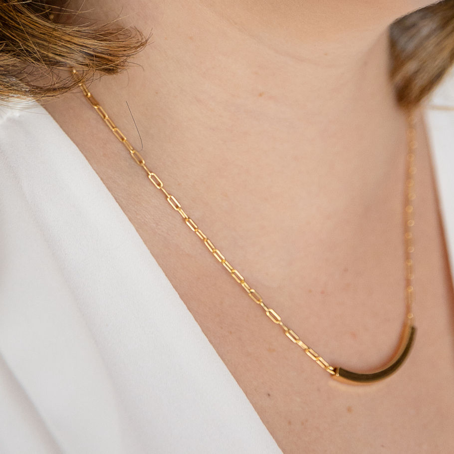 Este deslumbrante colar apresenta um design elegante e polido, tornando-o um complemento essencial para qualquer coleção de joias.